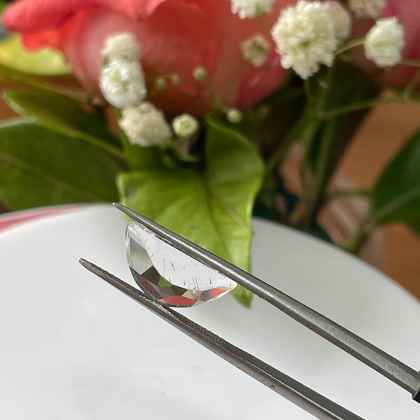 The Super Seven Gemstone is a rare and stunning stone, weighing in at 6.88 carats. Its unique bronze stands and beautiful crystal like look with Inclusions make it a must-have for any gemstone collector. Add this one-of-a-kind gem to your collection today.